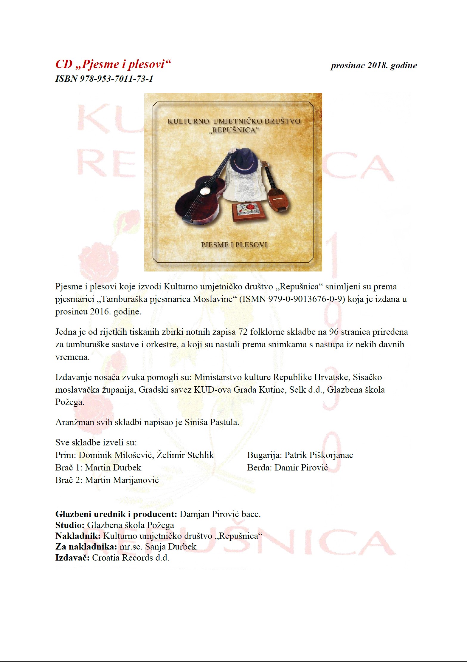 CD „Pjesme i plesovi“