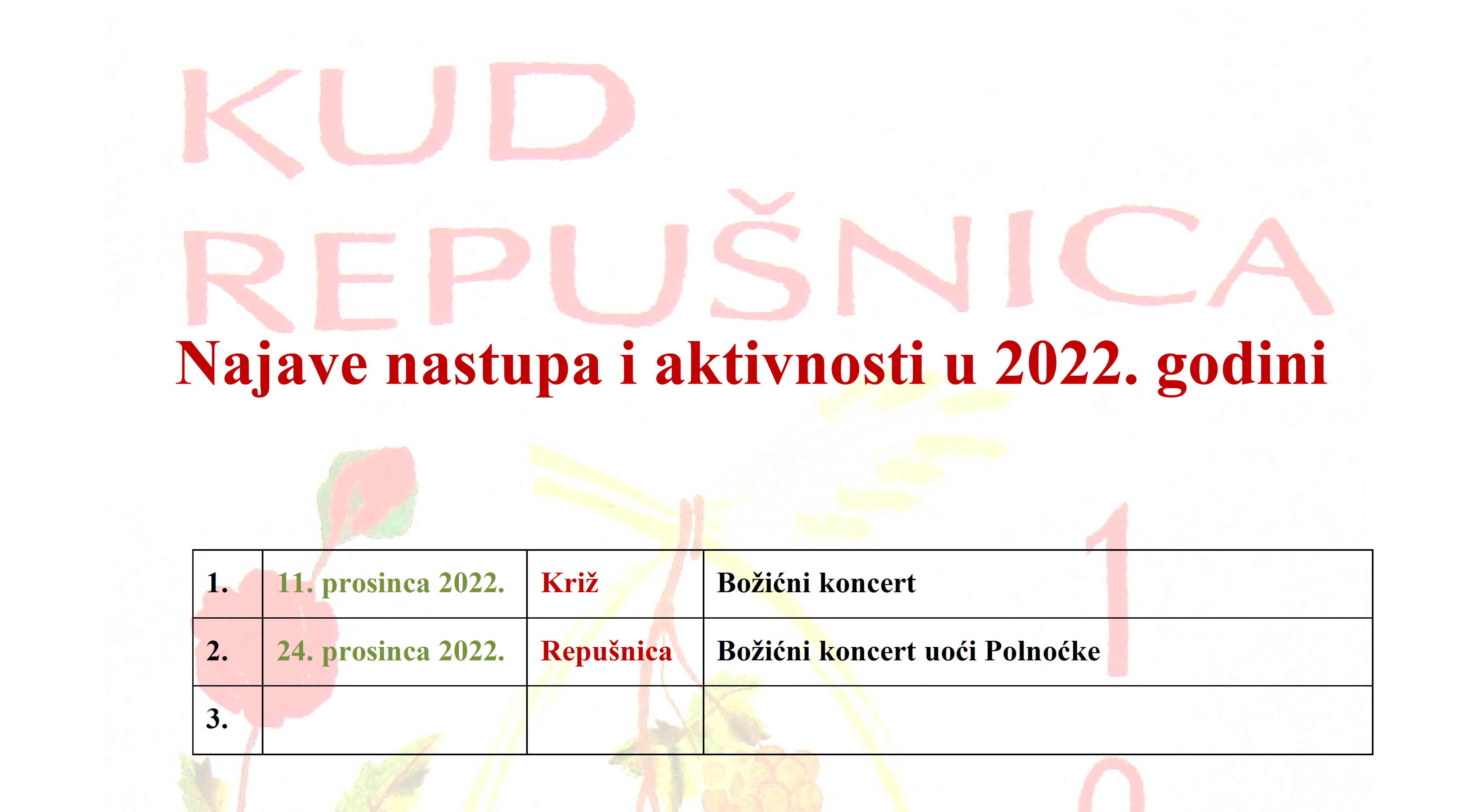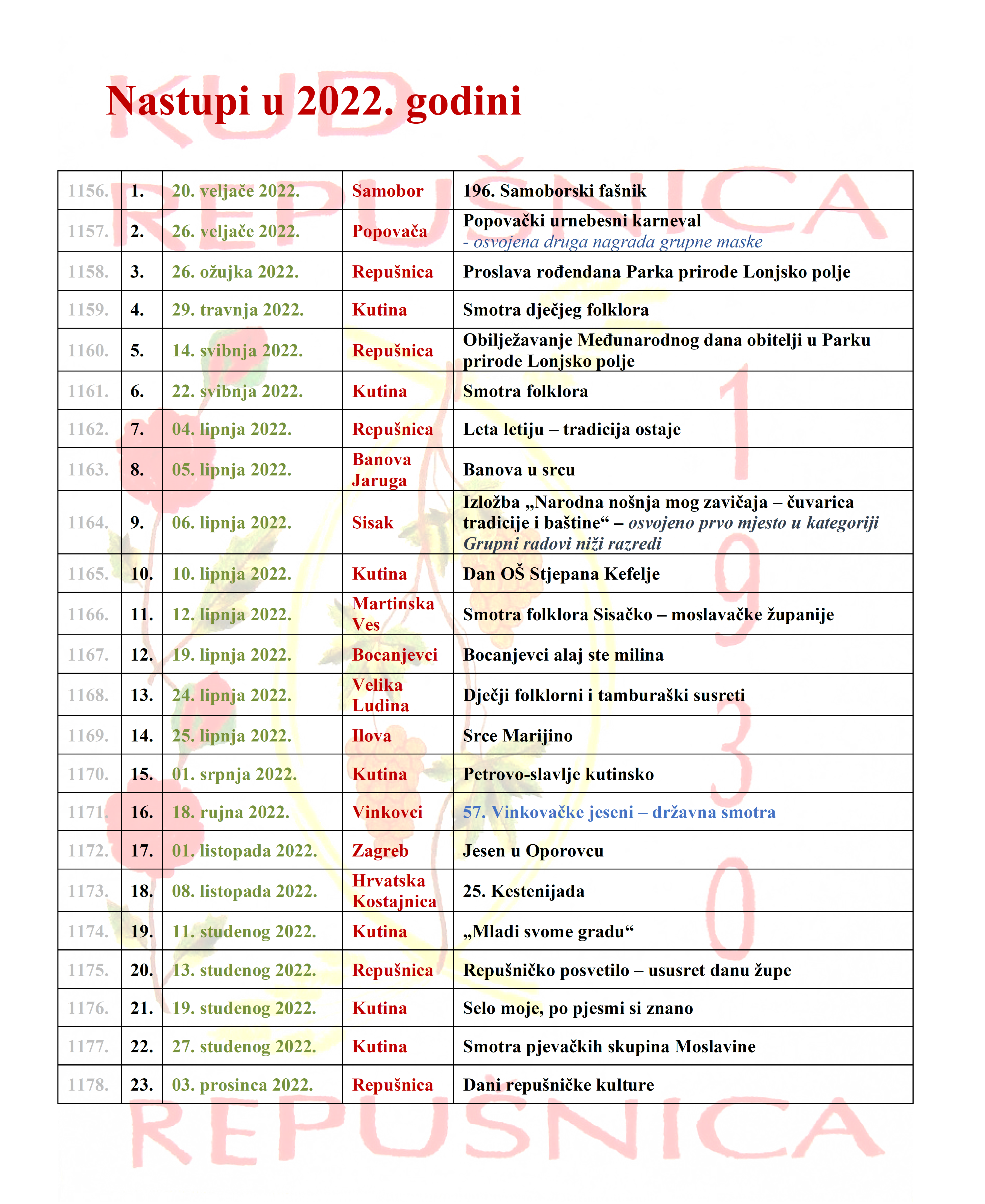 Nastupi u 2022. godini